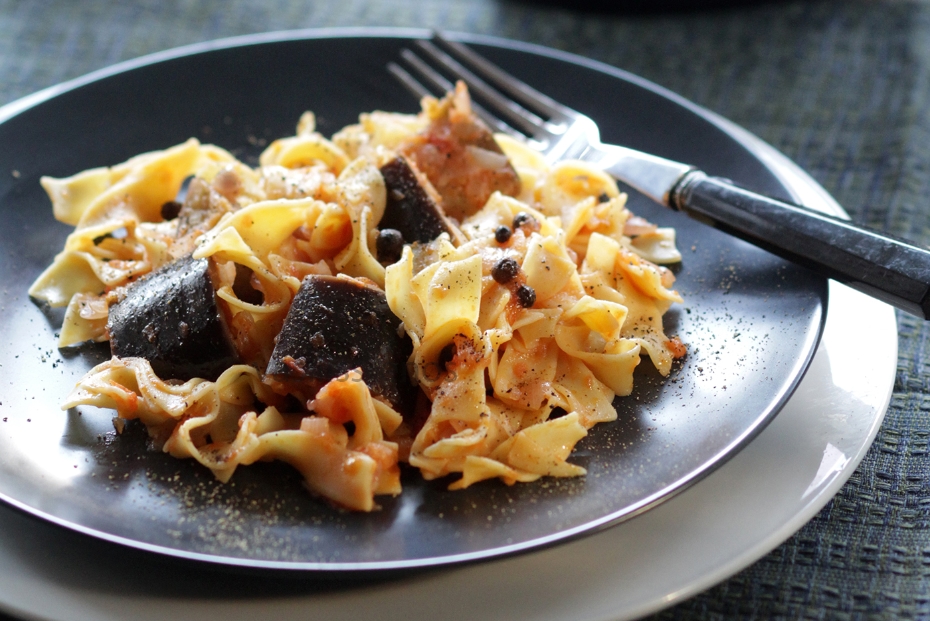 Limnos Style Pasta with Eggplant Sauce / Pseftopetino tis Limnou