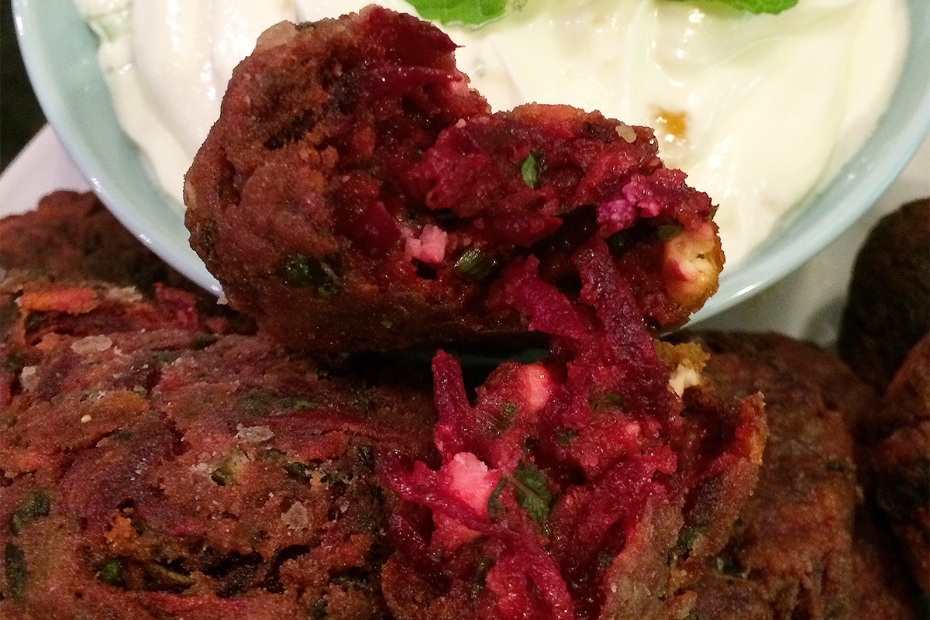 Beet Keftedes and Lemon-Mint Tzatziki