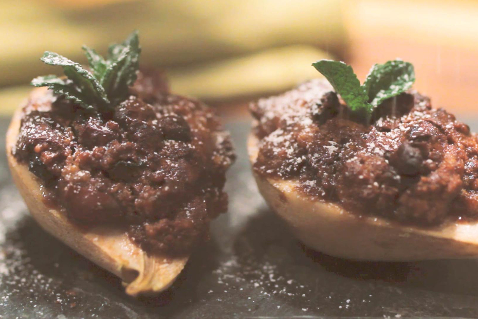 Baked Pears Stuffed With Melomakarona Cookies, Chocolate & Raisins