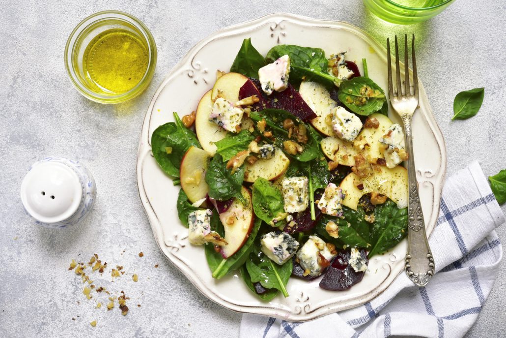 ROASTED BEETROOT, SPINACH, APPLE, AND WALNUT SALAD