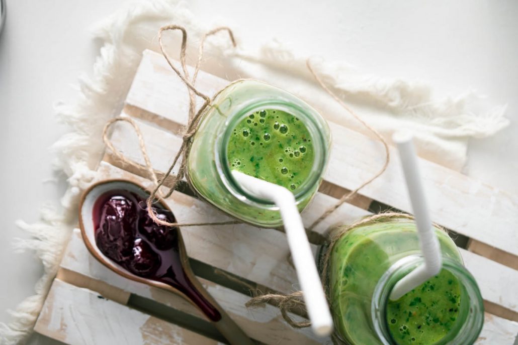 Sour Cherry Smoothie with Kiwis, Spinach and Greek Yogurt