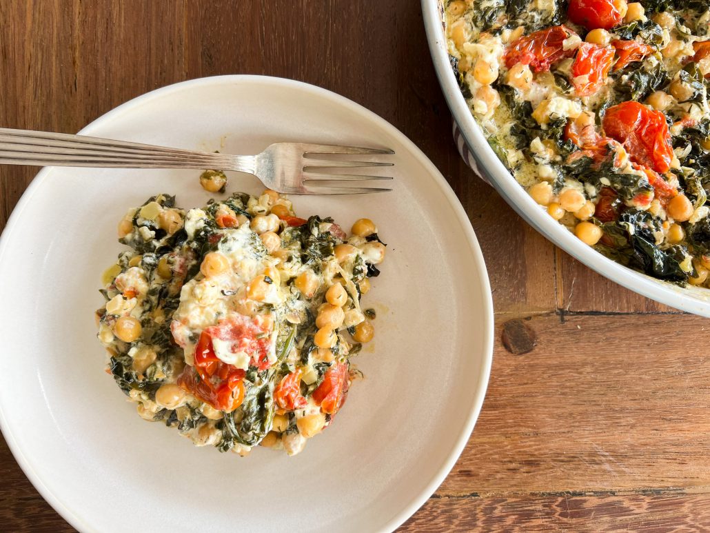 Spinach and Chickpeas Baked with Greek Feta