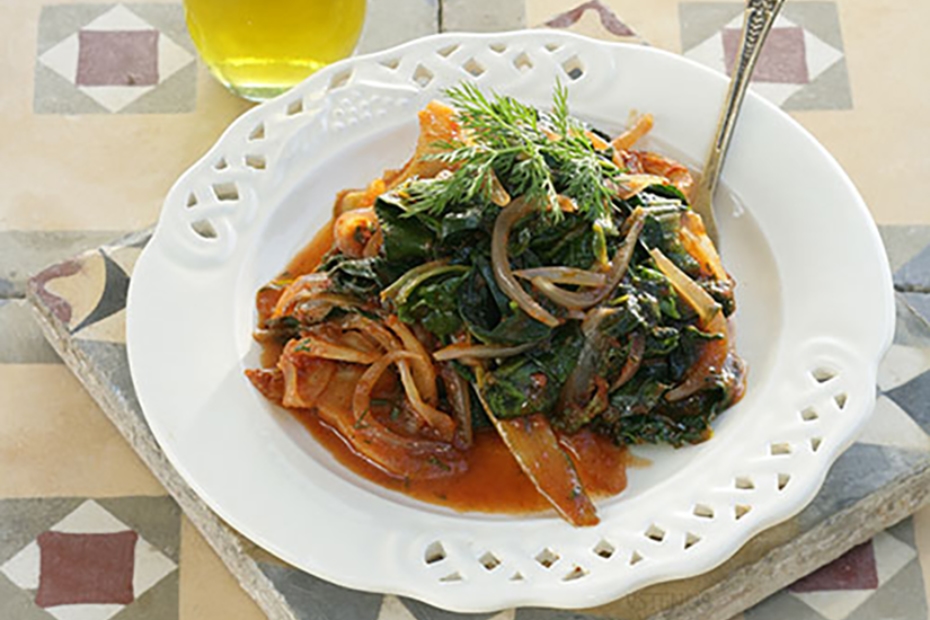 Sautéed Greens with Onions and Tomatoes (Tsigareli)