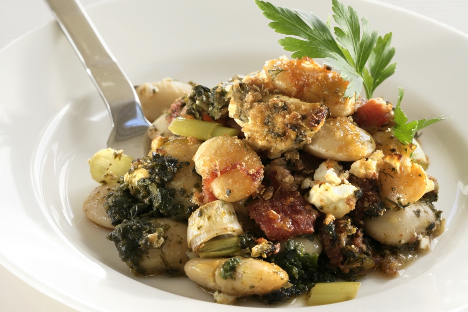 Plenty of Greek traditional flavours are used in this dish: sweet Greek giant beans baked with healthy spinach and traditional Greek feta. A traditional dish, appetizing in both taste and texture!