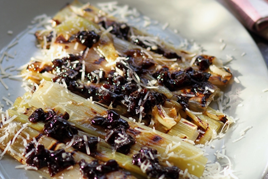 Seared Leeks & Shaved Cheese With Greek Currants or Prunes