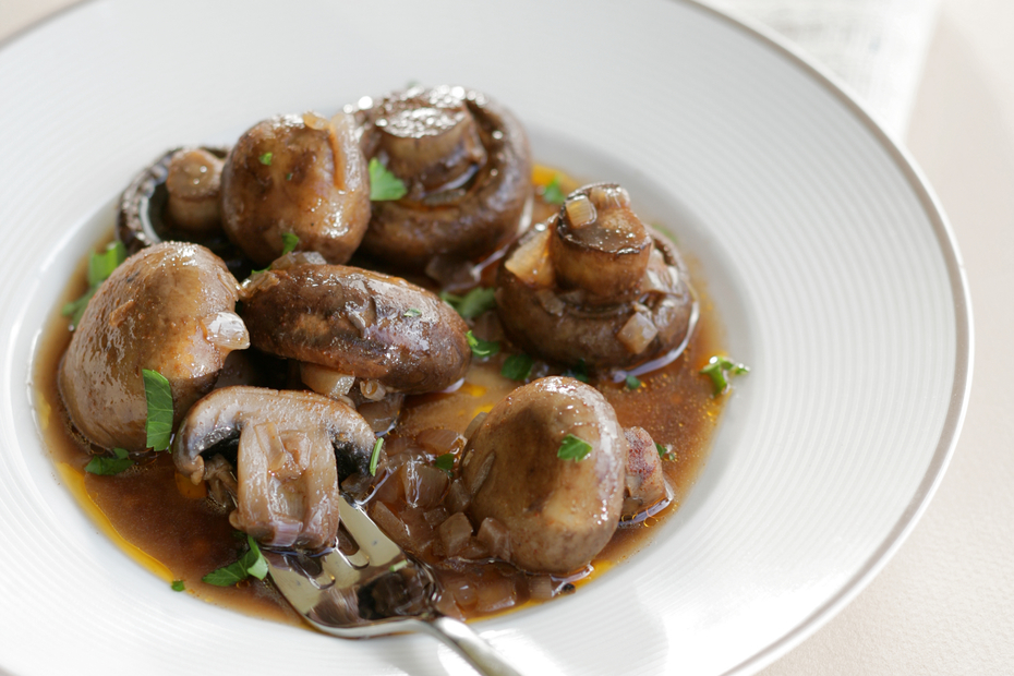 Button Mushrooms in Red Wine with a Touch of Cayenne