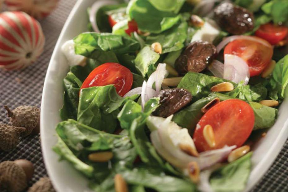 Spinach Salad with Olives & Pine Nuts or Chestnuts