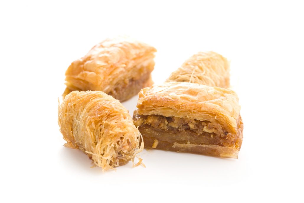 Most people who are familiar with kataifi, the thin-strand pastry, think it is actually shredded wheat or shredded phyllo. In fact, it’s made with a batter that is poured through a tiny-holed spout onto a large, hot, circle griddle that spins slowly, thus creating the vermicell-like effect. From what I know, a few places still […]