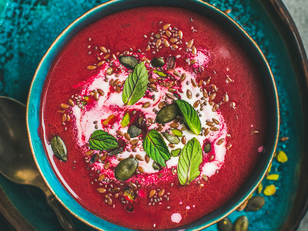 Beetroot Soup With Spicy Seeds And Coconut Milk