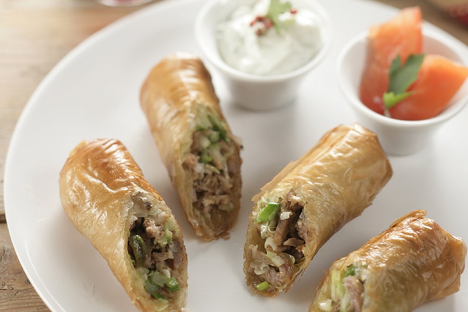Filo pastry and leftover roasts like lamb or even pork or beef are a great match. In this dish leftover lamb morphs into a totally new dish, equally enticing.