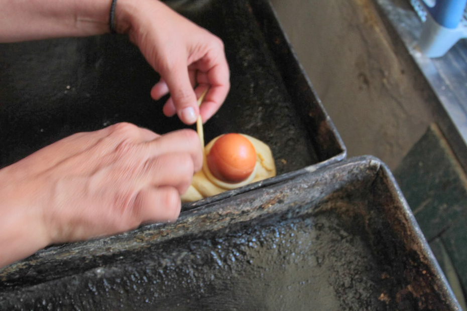 On Ikaria at Easter, home bakers take their Easter breads to the village baker because the wood-burning oven makes for much tastier breads.