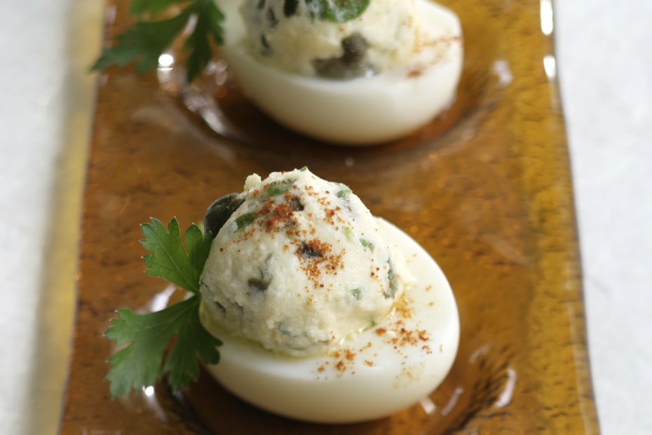 Deviled Eggs with Florina Peppers, Feta, and Yogurt